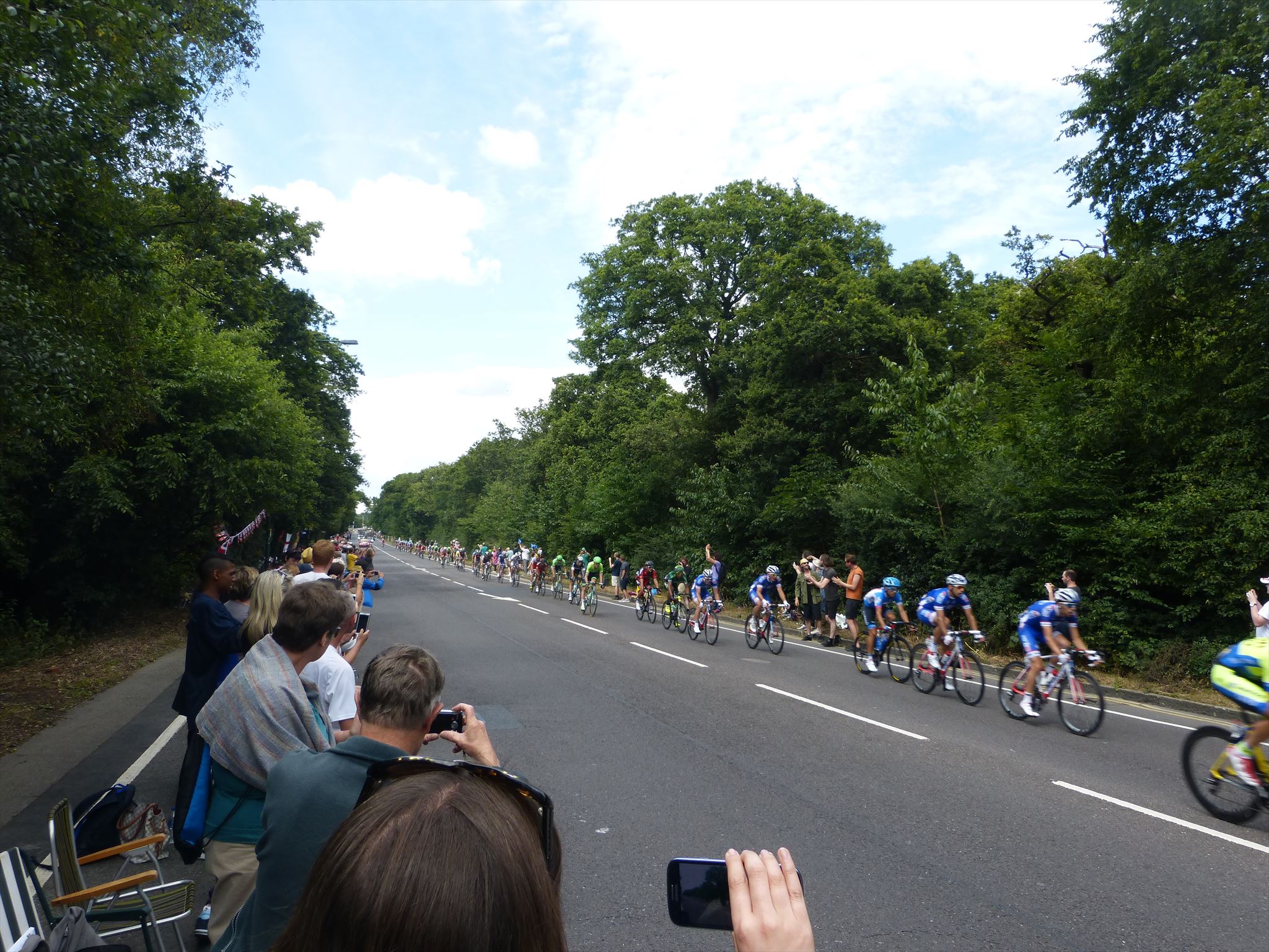 The posted co-ordinates are for the precise spot where myself, kathwood2003 and some muggle friends watched the riders of the Tour de France whoosh past in the blink of an eye. It was the third stage and started in Cambridge before a sprint finish in London on July 7th 2014. Don't believe me? Here's a picture to prove it of one of us.