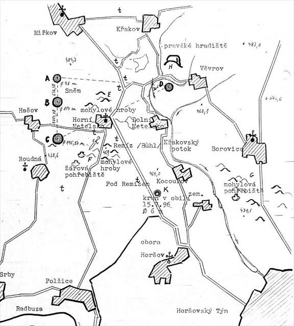 Souvislost se třemi kruhy u Horního Metelska a jedním u Věvrova, přímka protínající tři kruhy mezi Hašovem a Horním Metelskem by měla mířit kamsi na Písečný vrch a Chlum, ale v této teorii se jako pravděpodobnější uvádí, že míří na Jedlový vrch, který by měl být energeticky silný, nebo pro naše předky významný. Proto ho i při hledání keše navštívíte a sami budete moci posoudit tuto teorii. Když jsem se do staré mapy pokusil zakreslit přímku, spíše procházela "středem" Sedmihoří a ani kruhy nebyly v ose - můžete to posoudit sami zde. (zdroj:kpufo )
