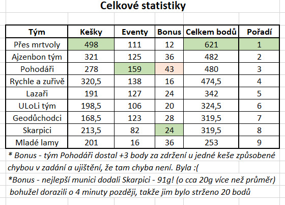 - Neděle - Úklid, sbírání kešek po závodě, odjezd