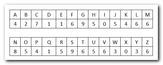 (letter above equals below, and vice versa)