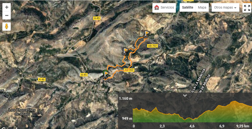 Pasando por Villa María cogemos un sendero marcado con pintura de sendero G.R., habrá que comenzar a ascender para situarnos sobre el cañón del río, con interesantes vistas hacia el mismo; sin dejar el sendero llegamos de nuevo al municipio de Nerpio.