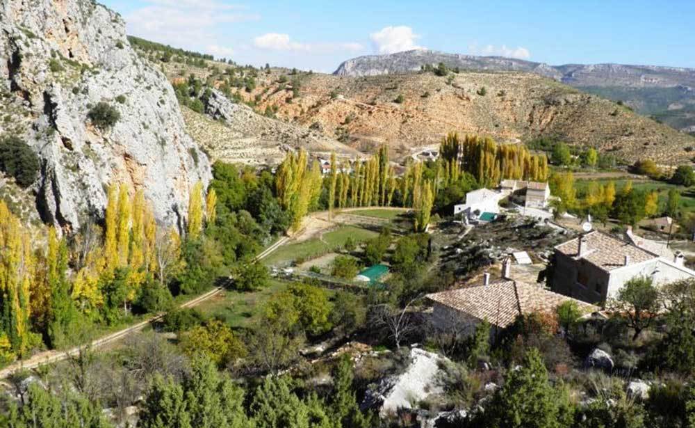 Continuando aguas abajo, se vuelve a cruzar en alguna ocasión el río pasando por un espectacular cañón sobre enormes tajos de roca, y por una bonita alameda y una acequia que va sobre el río, hasta llegar a un pequeño camino que llega hasta una pequeña cortijada y un camino asfaltado.