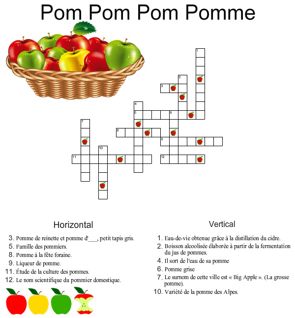Pour cette énigme, il faudra résoudre ce mot croisés et remplir dans certitudes le code correspondant aux 12 lettres identifiées par le symbol de la pomme, dans l'ordre des mots.
