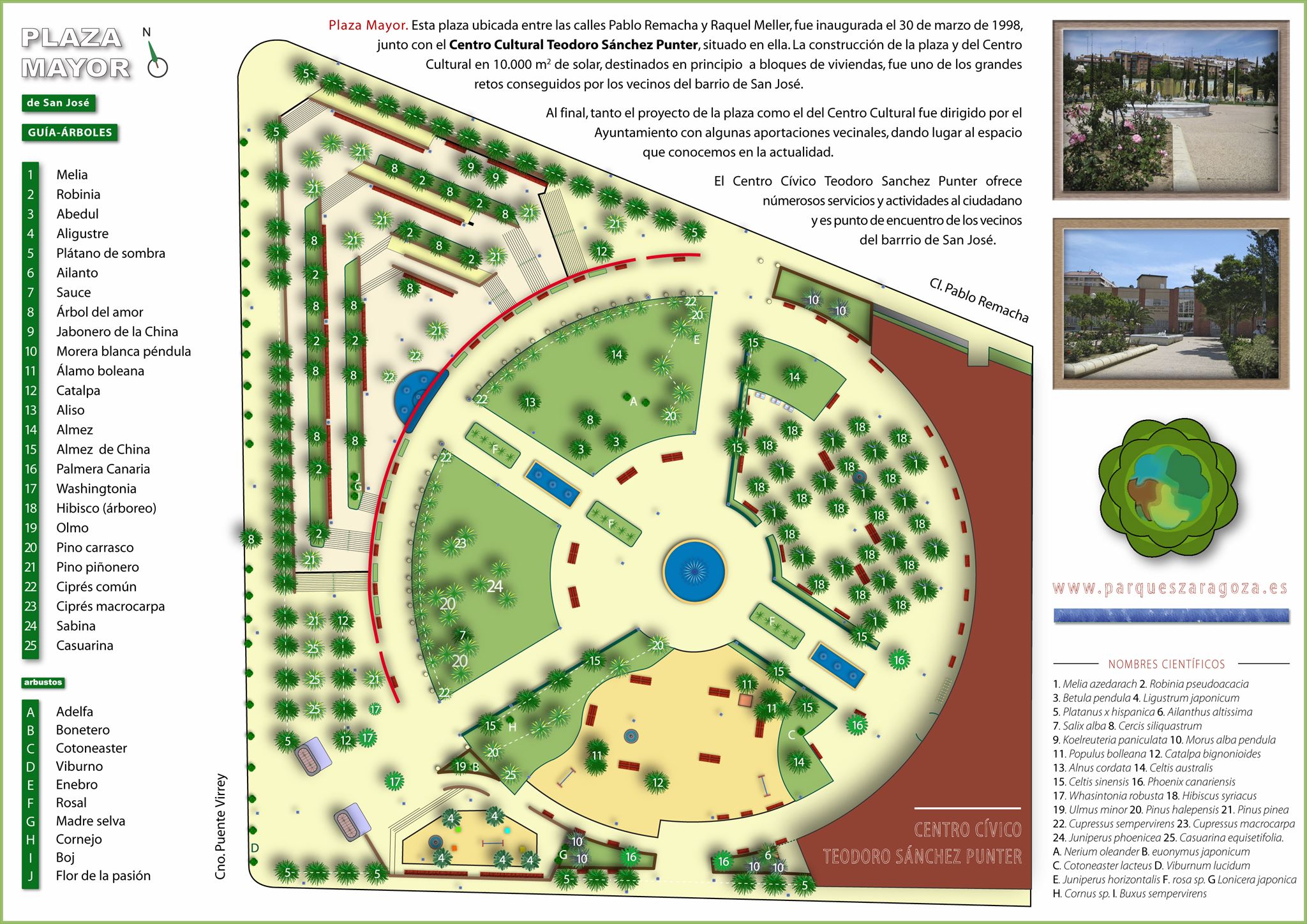 Otro dato curioso es la cantidad y variedad de árboles que crecen en esta plaza. Aunque no forma parte del caché, os dejo una imagen.