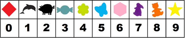 Chaque tampon correspond à une lettre (la lettre est contenue dans la boite mais correspond à l'ordre de la série : A = cache #2 ; B = cache #4 ; C = cache #5 etc...) et à une valeur en fonction de sa forme. Pour connaitre la valeur de chaque forme, reportez-vous à l'image ci-dessous :