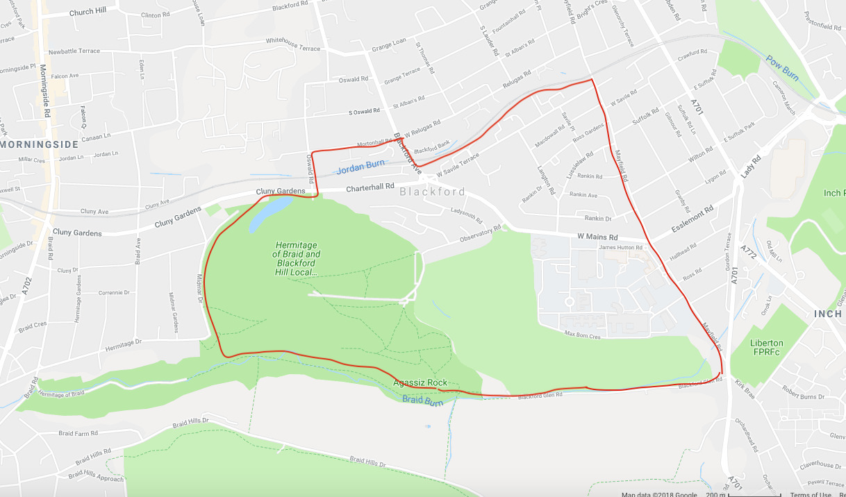 Blackford: A district of South Edinburgh bordered by the Grange to the north, Morningside to the west, Liberton to the east, and the Braid Hills to the south.