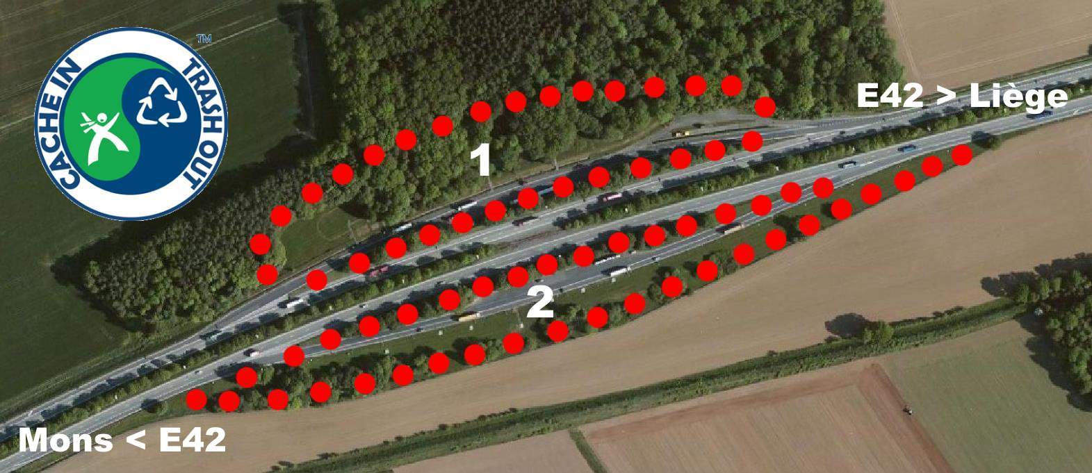 CACHES - Si vous ne l'avez pas encore découverte, une cache est disponible sur les lieux (zone 1) : E42 - AIRE DE HULPLANCHE VERS MONS (> FRANCE). Une nouvelle cache sera placée dans la zone 2 le jour du CITO ;-).