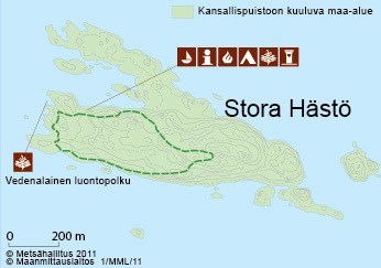 Stora Hästössä on perinteinen n. 1,5 kilometrin pituinen luontopolku, jonka tauluissa kuvataan elämää maan ja meren raja-alueella. Polku on merkitty valkoisilla kummeleilla ja sen voi kiertää kumpaan suuntaan tahansa. Kalliot ovat liukkaita sateella. Kätkö on piilotettu luontopolun varrelle saaren etelärannalle.
