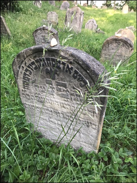 Opět lze říci, že klasické symboly – dobře známé z tradice – potkáváme především v „dolní“ (starší) části hřbitova – převládají symboly kohanim, levitské soupravy a koruny dobrého jména, v polovině 19. století navíc doplněné náznakem parochetu, nechybí ani motivy florální – za asi „nejluxusnější“ symbol lze ve Spomyšli považovat obřízkovou soupravu na jednom z náhrobků.