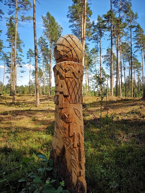 Kuro girininko pavaduotojo A. Jasilionio išdrožinėtų vienuolių tesinys link pačios girinkijos.
