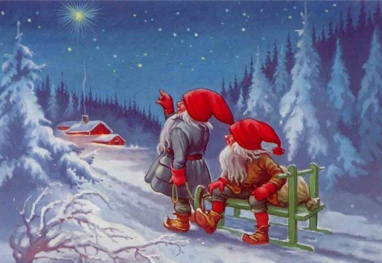 1. Joulukätkö on rakennettu, joulu on jo ovella. Putkiloita ripustettu ompi kuusen oksilla.