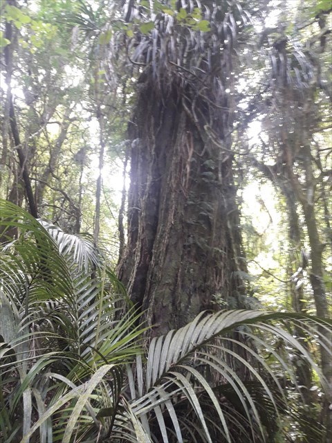 Park at the end of Reservoir Road and follow the track past the dam (GC673PD). After 10 minutes there is a crossing of the Tarariki Stream (GC677ZP9) and the track starts to climb (GC74XXZ). There are a few good viewing points on the way up and after passing through some pine trees there is an old garden hedge, a reminder of the home which once stood near by when a forty eight acre block was farmed here. Some of the post and rail fencing is still standing in the secondary growth (GC74XXB). Once through the hedge stay on the track which circles a lake. You will then arrive at an old hut (GC752XA).