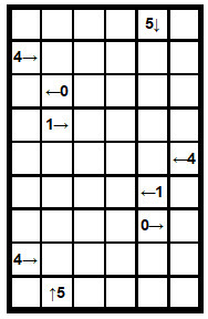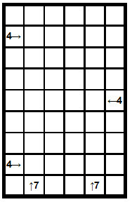 4) A cell containing a number and an arrow represents how many black cells are in the row or column pointed at by the arrow.