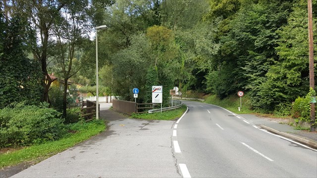 Der Radweg 39 beginnt beim Schlossplatz in Graz-Gösting und führt zum Thalersee.