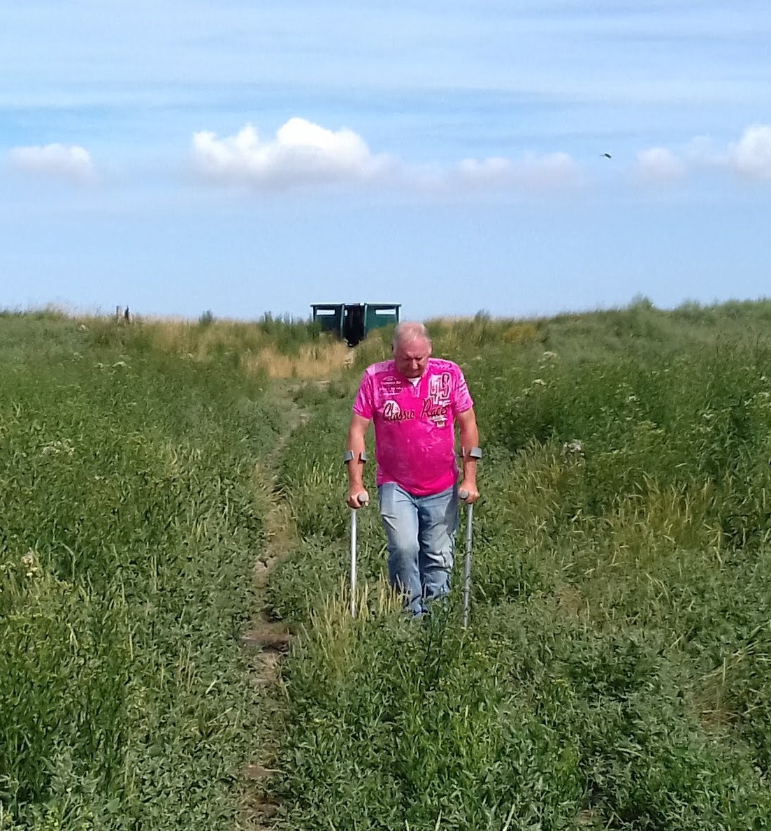 Na een lange tijd van revalidatie was hij weer een beetje op de been, maar bleef pijn houden.
