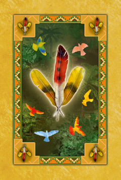 Am Boden liegen diverse farbige Federn.