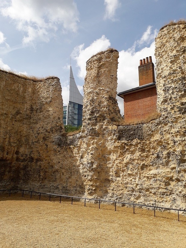Most of what remains of Reading Abbey is dark, grey flint. However, when the Abbey was built this would not have been exposed and would have been encased in white limestone or in a lime-wash. On this white canvas, features and details would have been decorated in colourful paint.