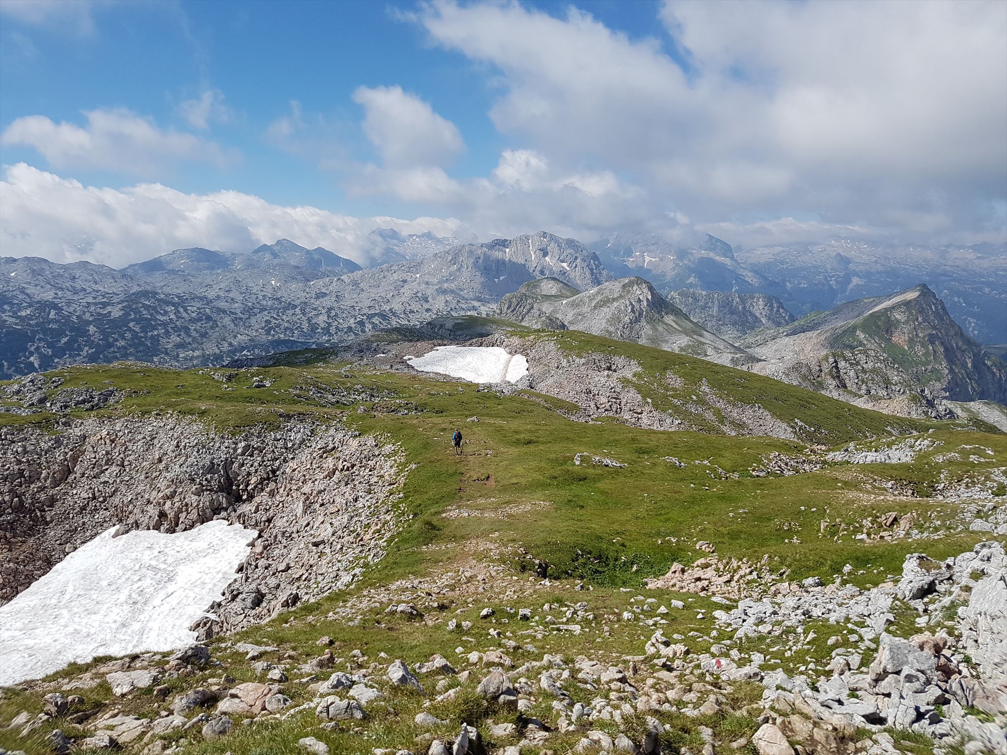 Nun geht es vorbei am Stacchus stetig bergab zum Seeleinsee. Hier gibt es immer mal kurze Stellen, an denen man aufpassen muss, nicht den Weg zu verlieren. Im Zweifelsfall geht es aber erstmal eh nach unten – abseits des Weges wird das allerdings durch die Latschenfelder ziemlich erschwert.