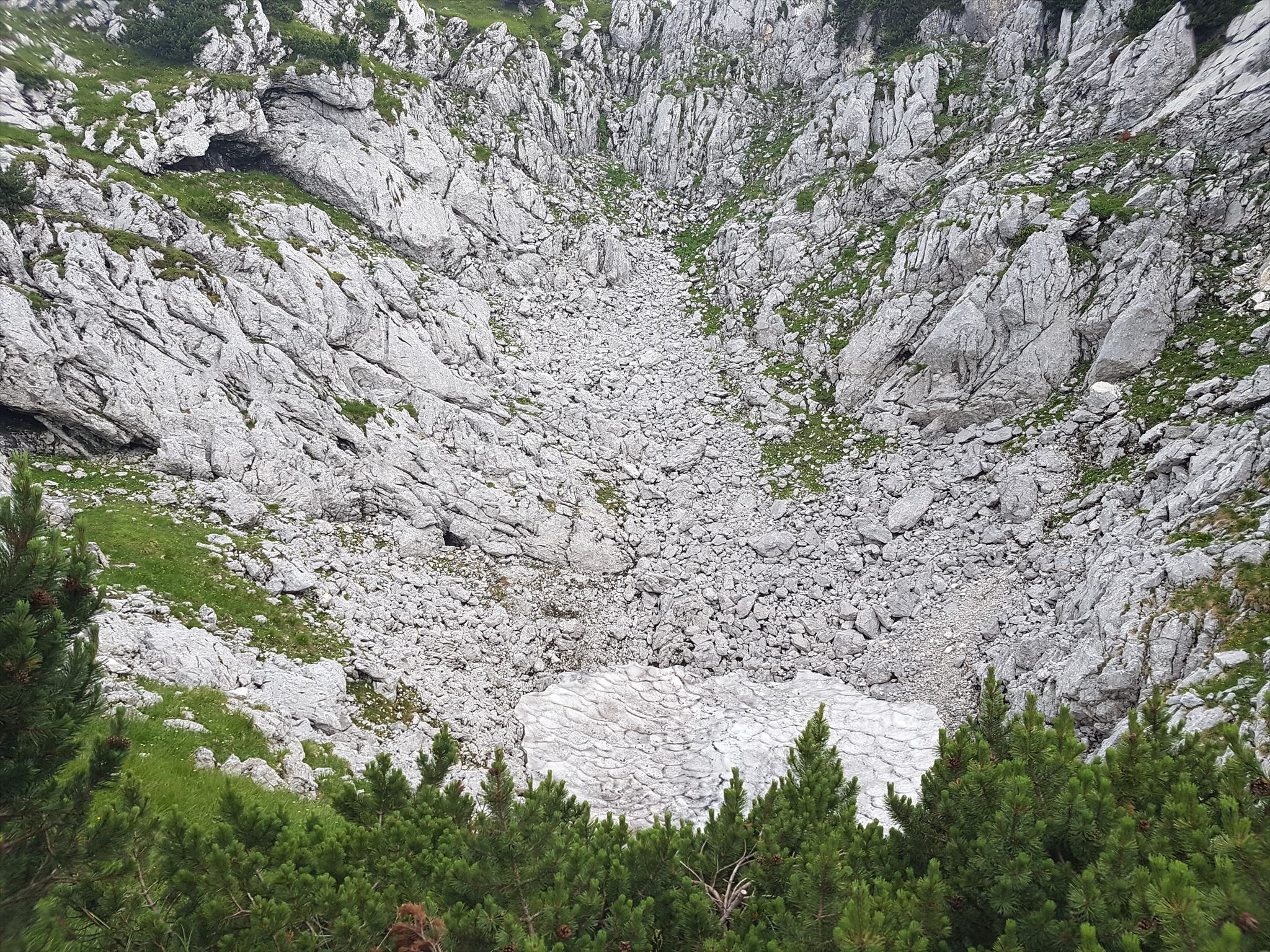 Der ersten Teil meiner Alpenüberquerung auf der Route Salzburg-Triest führte mich im Sommer 2018 am zweiten Tag über das Untersberger Hochplateau. Auf dem Weg kam ich schon an einigen Caches und Earthcaches zur Geologie des Untersbergs vorbei, vor allem aber fielen mir die vielen Dolinen hier oben auf. Ich fühlte mich an meine Tour über den Lahmen Kaiser erinnert und möchte nun auch hier auf diese geologische Besonderheit aufmerksam machen.