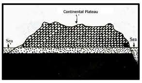 Continental Plateaus are formed either by an extensive continental uplifting or by the spread of horizontal basic lava (less viscous) sheets completely covering the original topography. This kind of plateau shows an abrupt elevation in contrast to the nearby lowland or sea. The Continental Plateaus are also known as Plateaus of Accumulation.