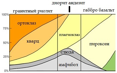 Минералогия: главным образом кварц, щелочной полевой шпат и плагиоклаз в различных количествах, обычно с роговой обманкой и / или биотитом; Московит может произойти.