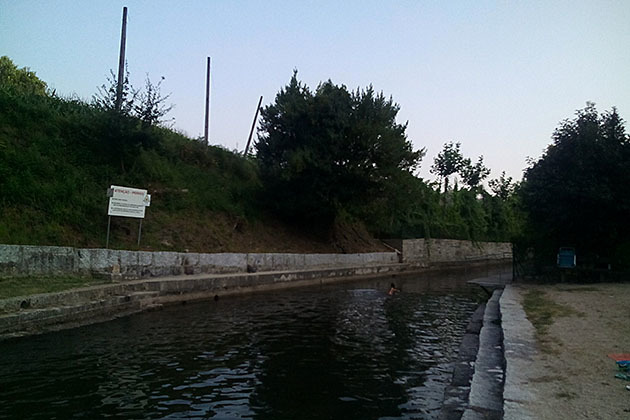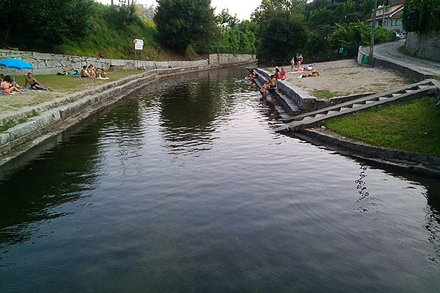 Nas coordenadas da earthcache há um xenólito no degrau superior da piscina. Um que tem dois olhos, o esquerdo quase quadrado e o direito com forma irregular. Isto visto com a água à frente.