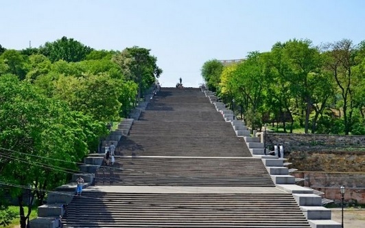 Sandstone is created from sand that has been cemented together to make a rock. It forms wherever sand is buried under the right conditions to pack it into a solid rock. This often occurs in offshore river deltas; however, sandstone is also found in desert dunes and on beaches. The sandstone used for the Potemkin stairs are from the Austrian port of Trieste (now in Italy) and it was shipped in by boat.