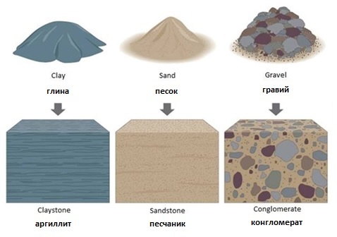 Осадочные породы названы в соответствии с размером зерна частиц осадка.