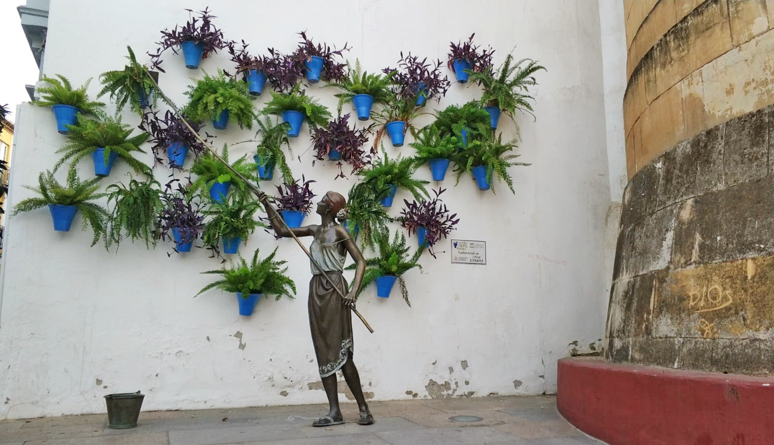 De la Puerta del Rincón no queda prácticamente nada, algún trozo de muralla, alguna almena, pero el espacio ha sido felizmente habilitado por el Ayuntamiento para la instalación de un grupo escultórico del cordobés José Manuel Belmonte, que es un piropo a nuestros patios.