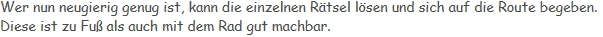 Ihr werdet einige schöne Plätze bei eurer Suche finden, manche laden zum Verweilen ein. Schaut euch einfach um.
