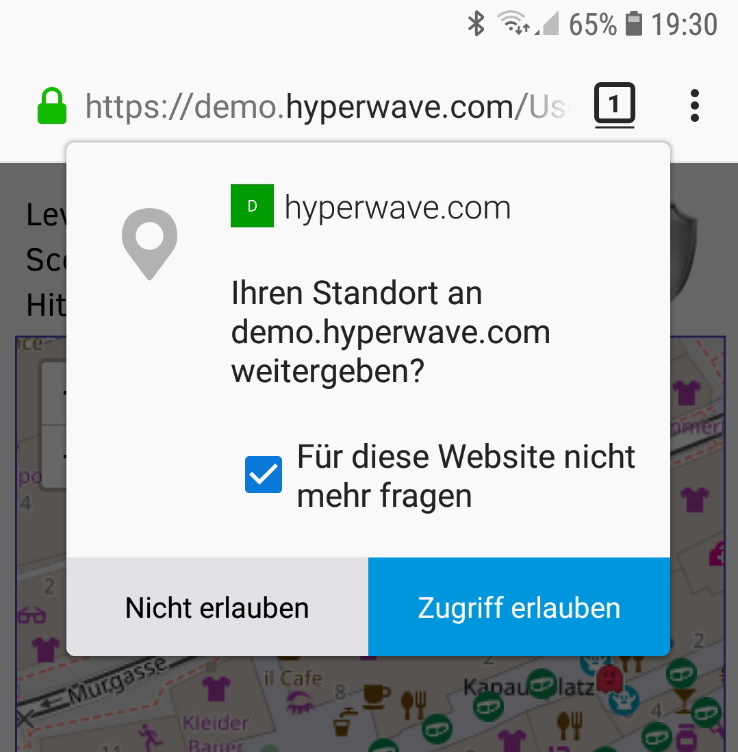 Nachdem ihr auf "SPIEL STARTEN" gedrückt habt, wird um die Erlaubnis gefragt, den Standort des Handys zu verwenden. Dies ist notwendig damit ihr den Geo-Man steuern könnt.