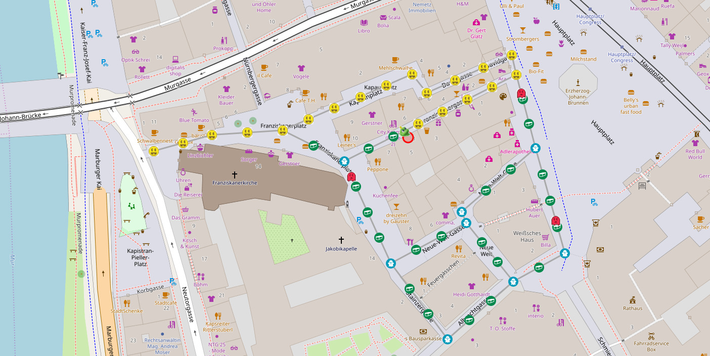 Hier kommt Geo-Man ins Spiel. Er verbindet die Idee von Pac-Man mit der Idee von Geocaching. Eure Aufgabe ist es, ihm dabei zu helfen alle Geocaches zu sammeln. Und damit ihr auch hinter dem Ofen hervor müsst, spielt das Ganze in den Gassen und Wegen von Graz. IHR seid Geo-Man.
