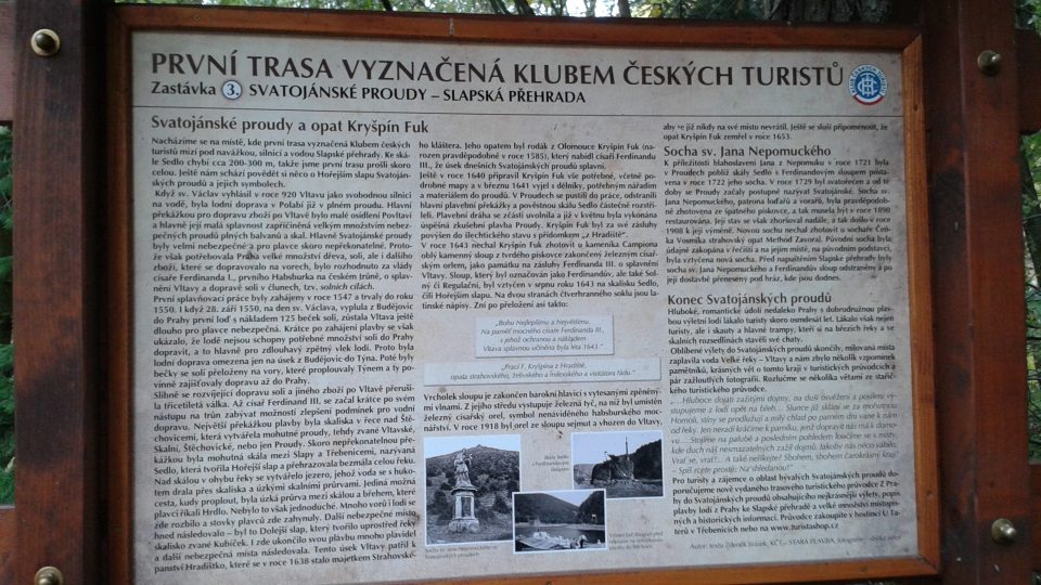 Klub českých turistů po 125 letech znovu vyznačil u Štěchovic historickou první značenou turistickou trasu Klubu českých turistů. Obnovená turistická značená trasa začíná 2 km za Štěchovicemi u bývalého altánu nad Štěchovickou přehradou, vede přes rozcestí Kolna a končí na břehu Slapské přehrady. Je dlouhá 3,5 km a je vyznačena historickou turistickou značkou, která má prostřední červený pruh o výšce 14 cm a bílé krajní pruhy o výšce 4cm. Jsou zde rovněž osazeny repliky dřevěných historických turistických směrovek a vývěsné turistické panely, ze kterých se turisté dozvědí podrobné informace o původní trase včetně historických fotografií. Turisté se ke slavnostnímu znovuotevření sešli 6. května na rozcestí Kolna, kde byla slavnostně odhalena replika první značené turistické trasy KČT, původně vyznačená „označovacím družstvem“ 11. května 1889.