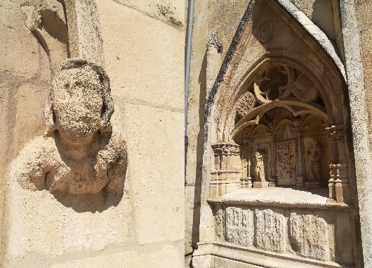 - Situate en las coordenadas : N 42 20.435/ W003 42.252 (Puerta del Sarmental). A la izquierda de la puerta de entrada, en la pared lisa, observa detenidamente las piedras enmarcadas. ¿De qué tipo de piedra caliza dirias que está construida…….y ¿Por qué…… ……..