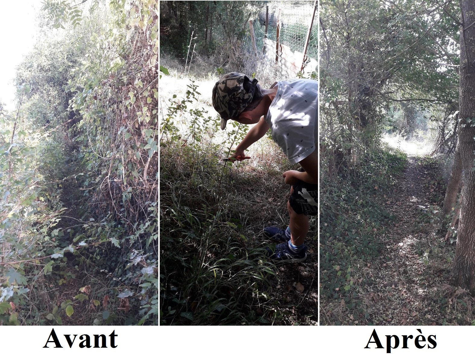- l'un est une voie passante et l'autre est tellement peu fréquenté que la végétation y a reprit ses droits. J'ai du utiliser mon sécateur pour rouvrir la voie (avec l'aide du fiston).