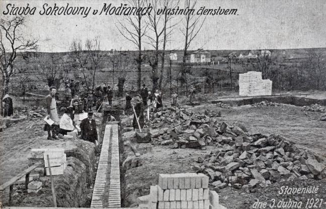 15. května 1921 byl položen základní kámen ke stavbě modřanské sokolovny. Při této příležitosti byl tehdy uložen do základů stavby pamětní spis, jehož rukopisný koncept byl nedávno objeven při studiu archivu Tělocvičné jednoty.