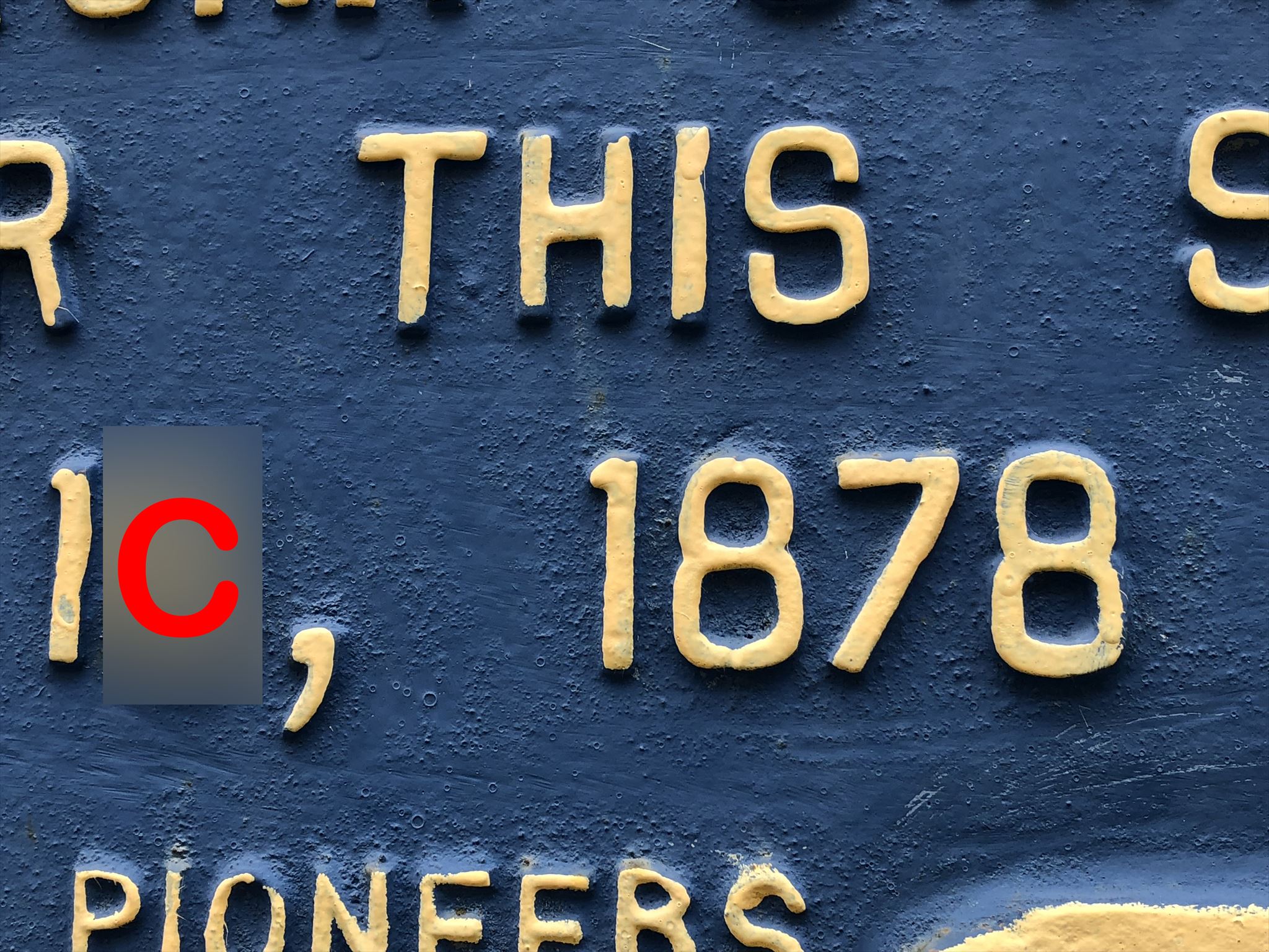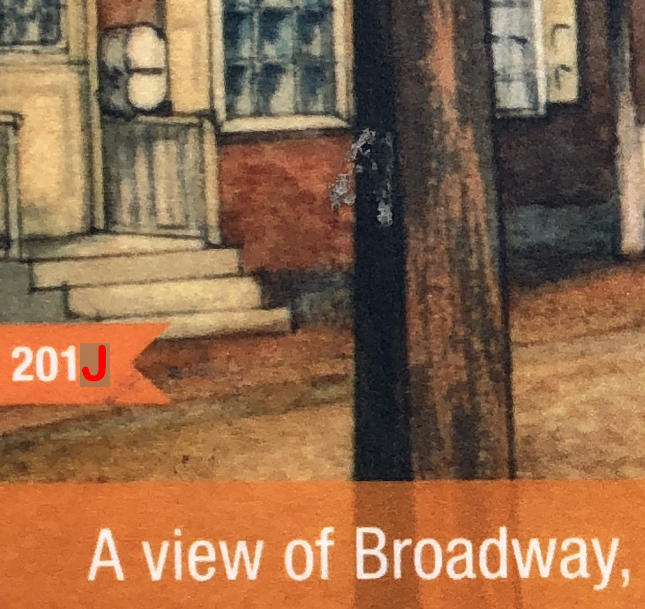Each photograph contains a number with a missing digit. In that number's place is a letter, 'A' though 'J'. All you need to do is to find that missing number (it's somewhere in that block!), and substitute it into the following formula to get the coordinates of the cache: