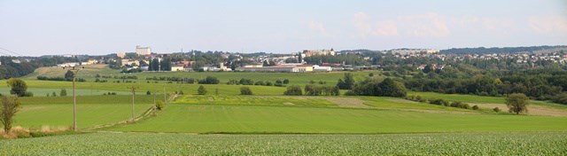 Dále vpravo je v popředí okrajová část obce Kozmice a za nimi pak obec Bolatice s kostelem sv. Stanislava vzdáleným cca 8 km.