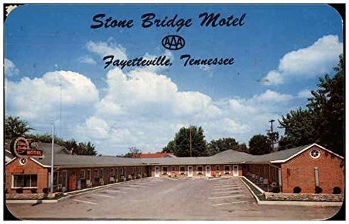 The Stone Bridge Motel was here (actually both where the Patrick Rehab-Wellness Center is and across the street where Walgreens is) from the atleast the 50s to the 90s. There doesn't appear to be any remains of the Stone Bridge Motel, but there is still a Stone Bridge Motel billboard on the Shelbyville Highway. This cache has been placed on the Lincoln County Election Commission Building with the approval of Bill Newman, Lincoln County mayor.