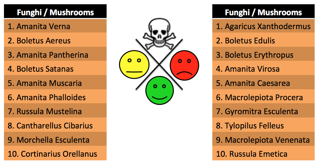 Preamble: the toxicity of the mushrooms in this cache refers to the information on the toxicity that is reported in books and on websites. Clearly the type of poisoning depends on the dose ingested, the type of mushroom, the type of cooking (raw, cooked, dry,...) and also food intolerances.