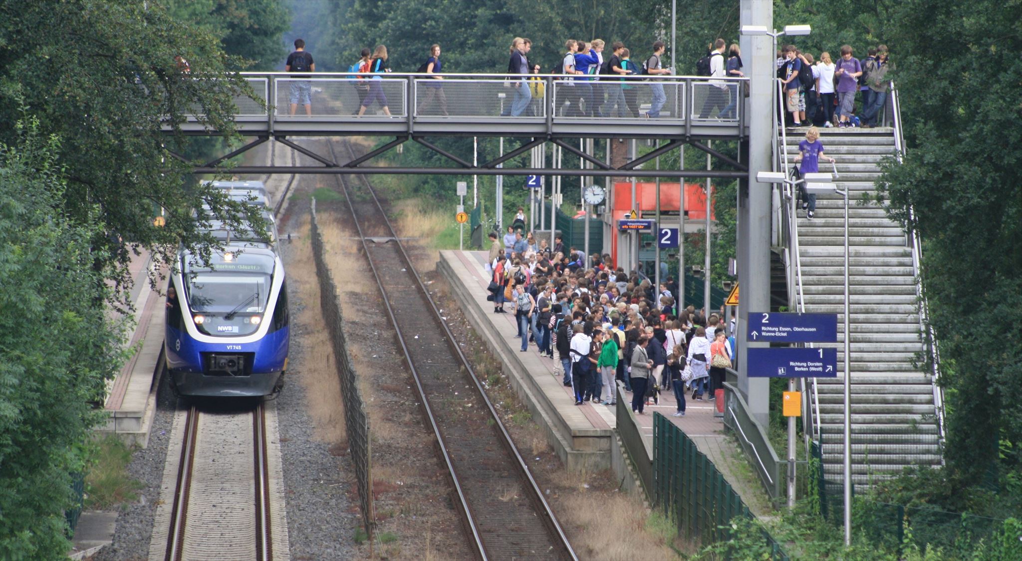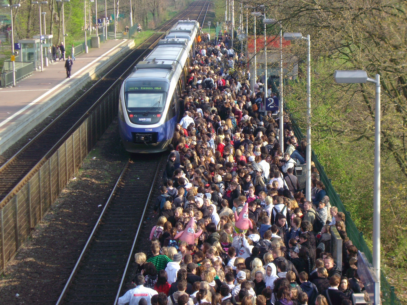 Der Bahnhof Feldhausen wird täglich von einem Dutzend Anwohnern genutzt und zwischen April und Oktober vorwiegend von Freizeitparkbesuchern. Dann kann es am Bahnsteig auch schon mal voller werden (das Bild oben habe ich vor einiger Zeit aufgenommen und ist keine Fotomontage - keine Ahnung, wie sie alle in den Zug passen wollen...