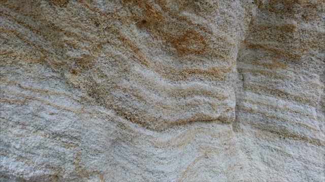 1) Na druhém obrázku v listingu vidíte žluté vrstvičky na bílém pozadí. Najděte je na skále a zjistěte jejich mocnost.