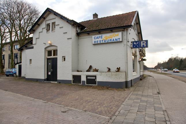 Het voormalige benzine-, olie- en smeermiddelenstation.