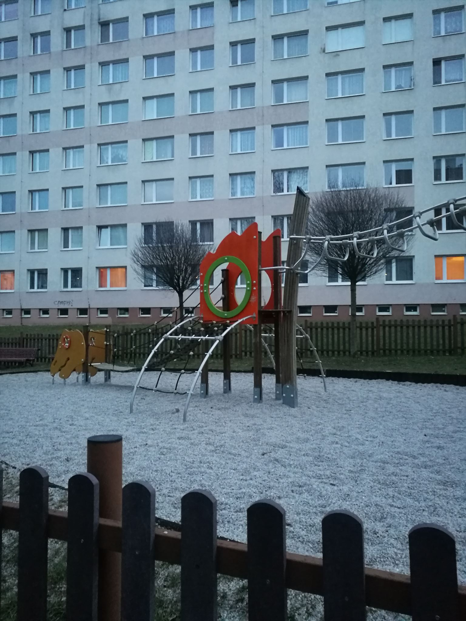 V blizkosti souradnic N 50° 03.857 E 014° 18.766 hledejte u plotu hriste vyfocenou lampu a zjistete jeji cislo. Na hristi spocitejte vyskyt pruzinovych houpacek; tj. hernich prvku, u kterych je na jedne nebo vicero pruzinach (strunach), ktere jsou pripevnene do zeme, nasazena cast, na ktere dite sedi nebo stoji a houpa se vykyvy pruziny... Definici vkladam na zaklade logu k predchozim kesim serie...