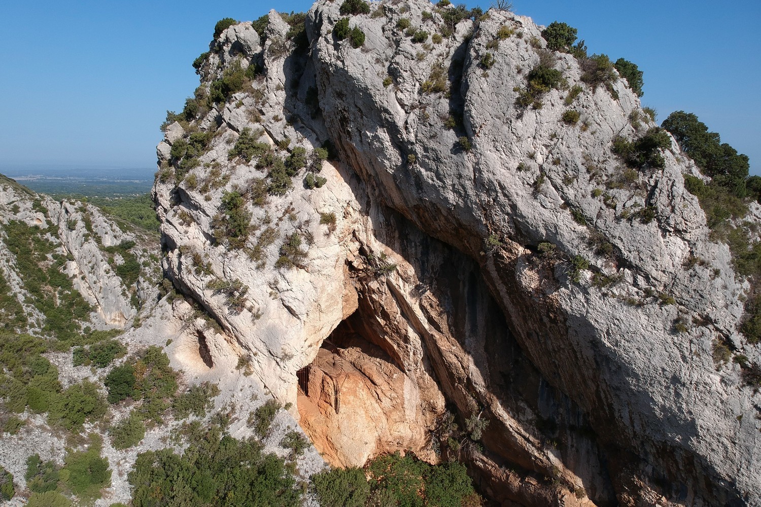 Continuez à pied pour atteindre l’entrée du vallon et pour grimper à droite dans un pierrier (montée un peu technique!). La grotte se trouve sous le point côté 243m sur la carte IGN.