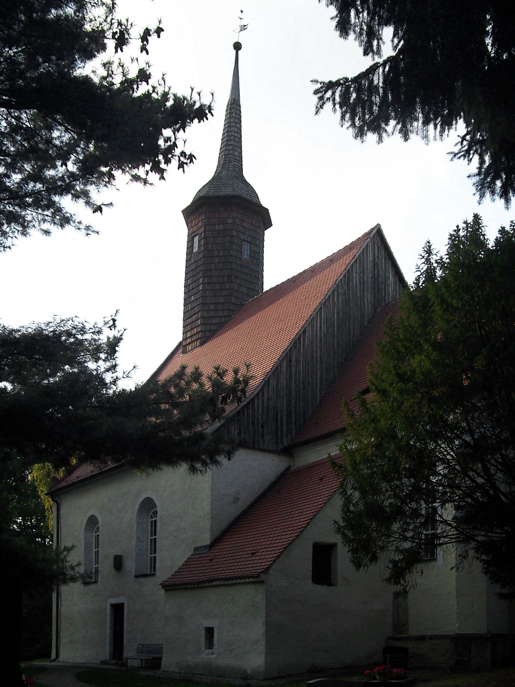Dorfkirchen können durchaus etwas Besonderes sein. So auch die in Lausa. Schon von weitem sieht man den Kirchturm (eigentlich ist es ein Dachreiter) und ist erst einmal fasziniert davon, dass das spitz aufragende, leicht schräg stehende Türmchen mit Holzschindeln bedeckt ist. Erst auf den zweiten Blick sieht man eine noch viel größere Besonderheit: Die Wetterfahne auf der Spitze zeigt nicht nur den Fisch als Christus-Symbol, sondern auch einen kupfernen Halbmond mit Stern darüber…
