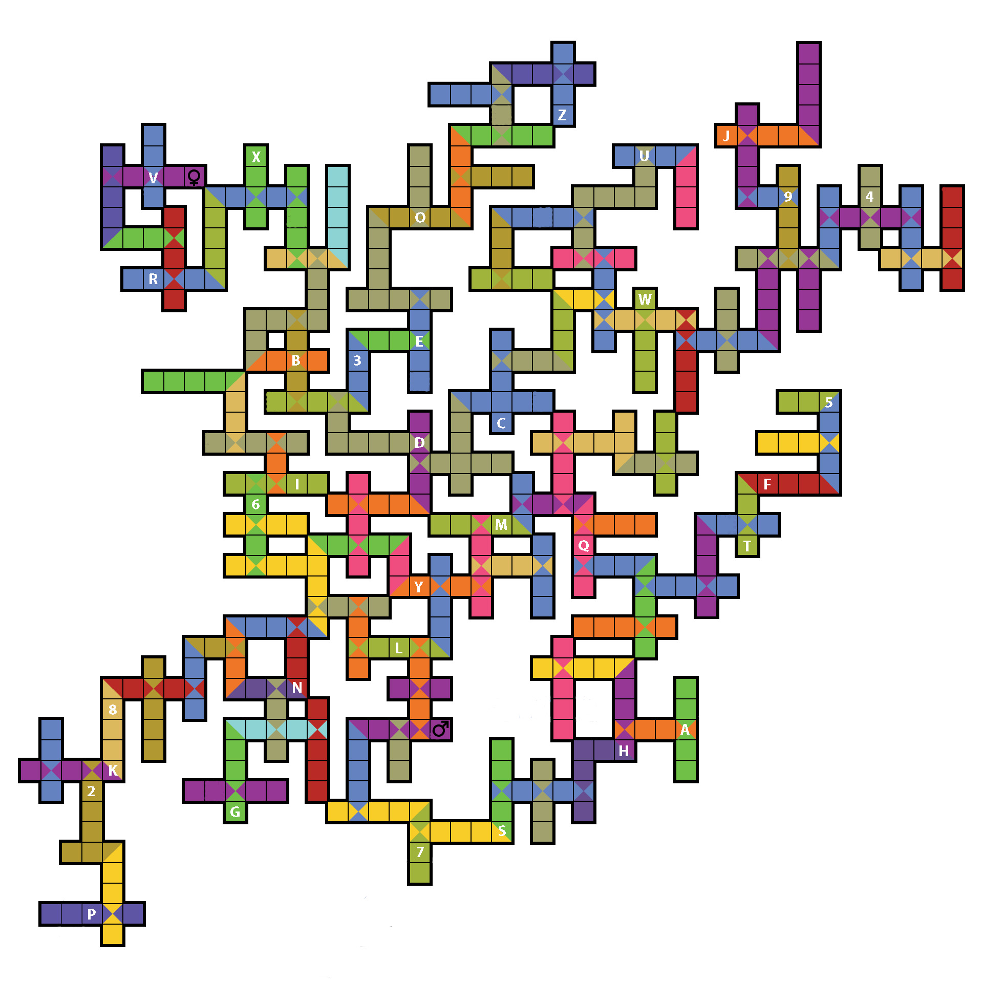 2021 update: Unfortunately it has just been picked up that there is a small and subtle error in one square which many of us missed for a very long time. It is where there is a blue and green square which is 2 down and 4 to the right of the Q square. Thanks atsmug for spotting this. Please contact the CO if you come across this and need help.