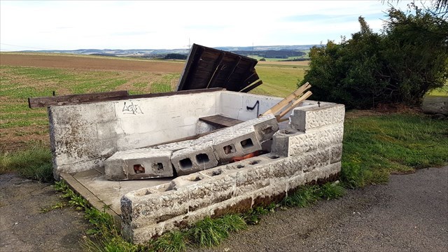 Dann kam leider der 23.09.2018 und mit ihm das Sturmtief "Fabienne", das hier gewaltsam einen Schlussstrich zog. Durch den Sturm wurde die Schutzhütte mitsamt einem Teil der Grundmauern weggerissen - und mit ihr der Cache. 😢