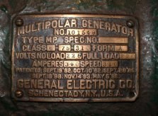The plate detailing the generator's specifications. Photo: J Welch. The generator plate
