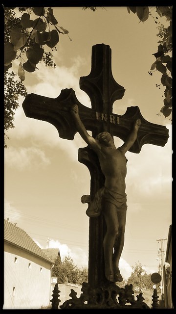Všiměte si domu nalevo od kříže (č.p.73), mezi dvěma posledními okny na jeho pravé straně hledejte bílou cedulku - počet písmen na cedulce je indicie A.